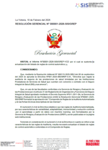 A partir del 1 de octubre de 2025 quedarĆ”n sin efecto las directivas anteriores del SIS relacionadas con el control presencial posterior, el levantamiento de observaciones de FUAs y el control prestacional electrónico, siendo reemplazadas por la Directiva N° 001-2025-SIS/GREP-V.01, que regula la auditorĆa de seguros de las prestaciones de salud brindadas por las IPRESS con convenio o contrato con el SIS.